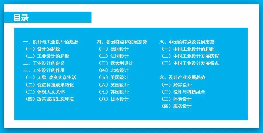 近期,北京工業(yè)設(shè)計促進中心陳冬亮主任在北京大興舉辦的《工業(yè)設(shè)計產(chǎn)業(yè)發(fā)展態(tài)勢》專題培訓(xùn)會上,從設(shè)計與工業(yè)設(shè)計的起源、工業(yè)設(shè)計的定義、工業(yè)設(shè)計的作用、各國的特點及發(fā)展態(tài)勢、中國的特點及發(fā)展態(tài)勢、設(shè)計產(chǎn)業(yè)發(fā)展趨勢六個層面作了專題報告。特制作系列專題,和大家分享。