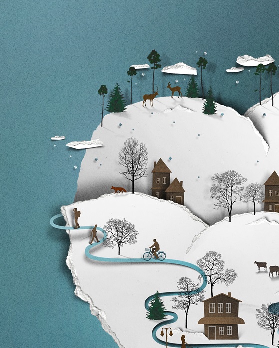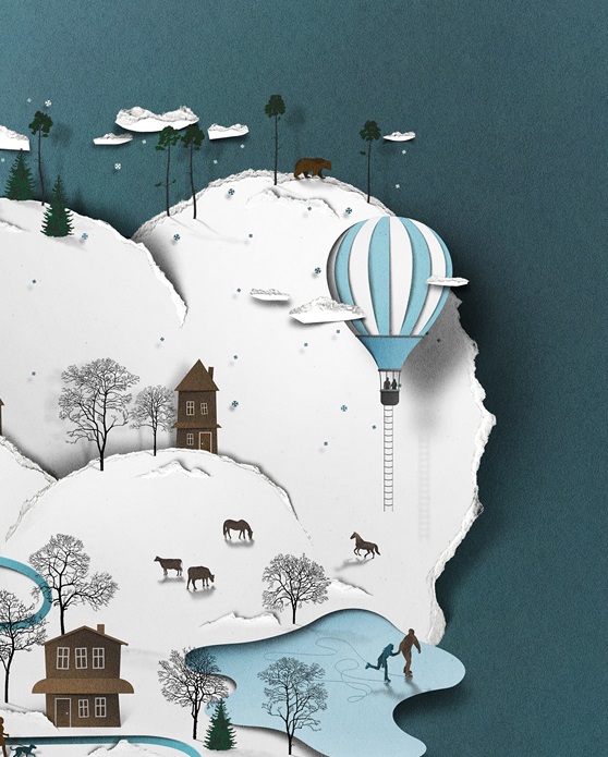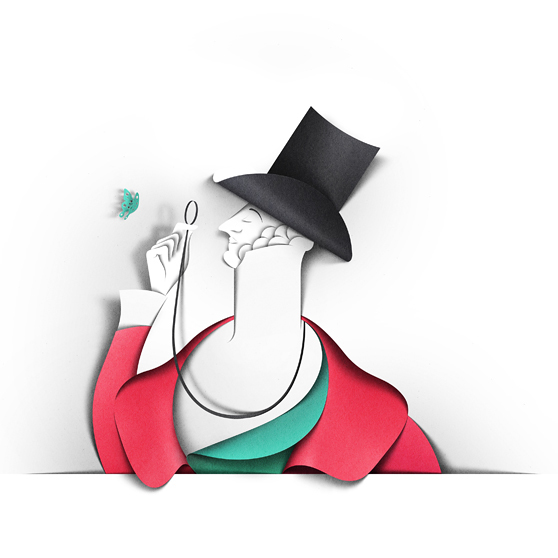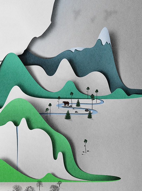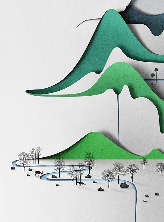愛(ài)沙尼亞的設(shè)計(jì)師、插畫(huà)師Eiko Ojala在紙上展現(xiàn)了一個(gè)神奇的世界,他運(yùn)用紙質(zhì)和陰影塑造了立體的畫(huà)面,作品色彩豐富,集質(zhì)感、優(yōu)雅于一身。他的設(shè)計(jì)作品多發(fā)表在紐約時(shí)報(bào)(New York Times)、紐約客(New Yorker)等各類(lèi)報(bào)刊雜志上,其紙藝插畫(huà)的海報(bào)也堪稱(chēng)經(jīng)典之作。