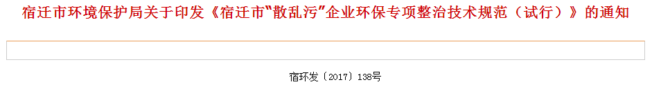 關(guān)于印發(fā)《宿遷市“散亂污”企業(yè)環(huán)保專項(xiàng)整治技術(shù)規(guī)范(試行)》的通知