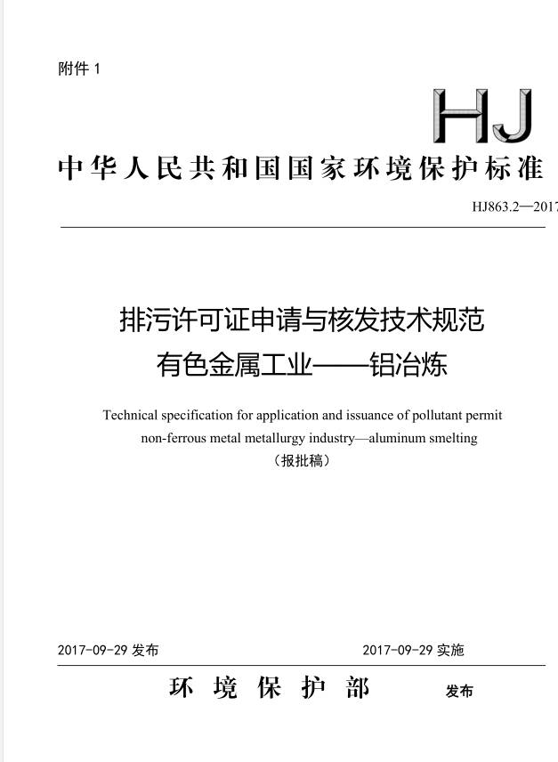 《排污許可證申請與核發(fā)技術(shù)規(guī)范 有色金屬工業(yè)-鋁冶煉》(發(fā)布稿終)