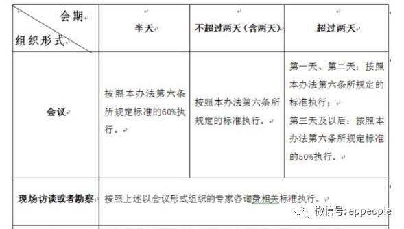 第九條 不同形式組織的專家咨詢活動適用專家咨詢費標(biāo)準(zhǔn)如下: