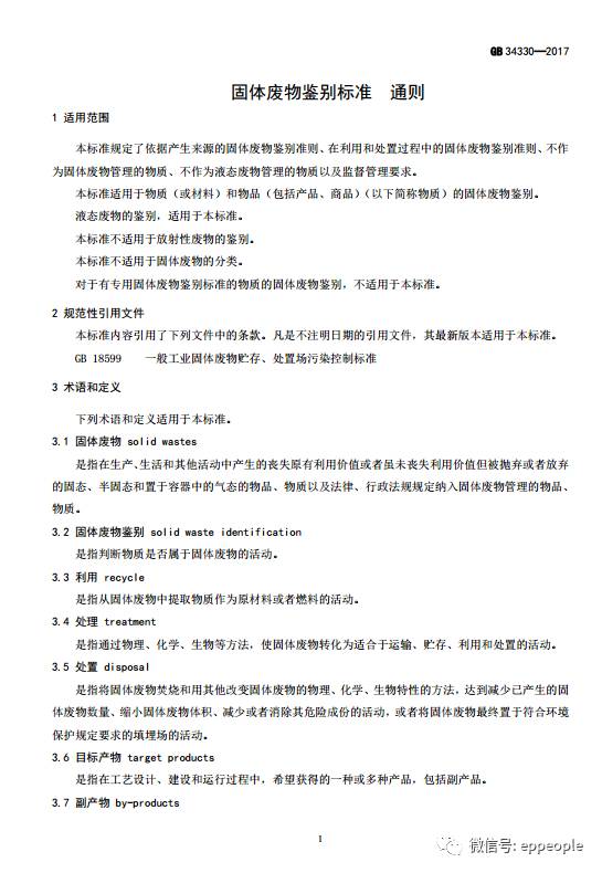 固體廢物鑒別標(biāo)準(zhǔn) 通則(GB 34330-2017 )