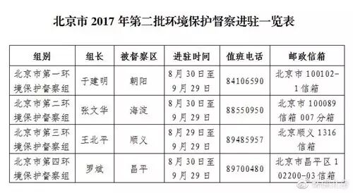 北京第二批環(huán)保督察組進(jìn)駐四區(qū) 公布值班電話和郵箱