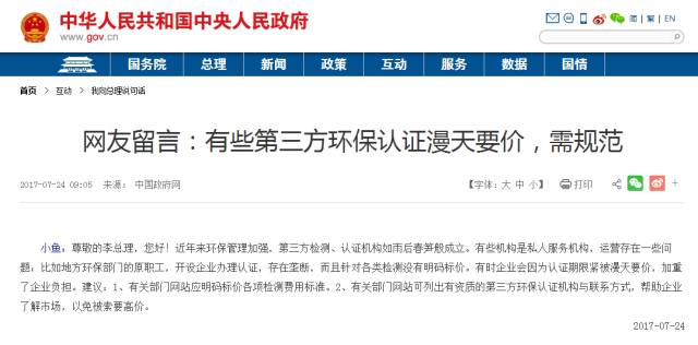 有人向李克強總理反映:在辦理環(huán)保噴漆牌照遭遇高額“公關費”、第三方環(huán)保機構漫天要價
