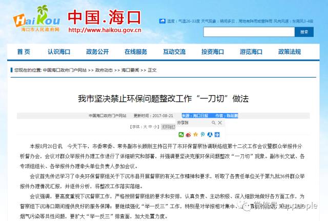 海南:我市堅(jiān)決禁止環(huán)保問題整改工作“一刀切”做法