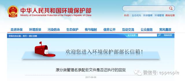 首先:請看近期環(huán)保部長信箱回復(fù):