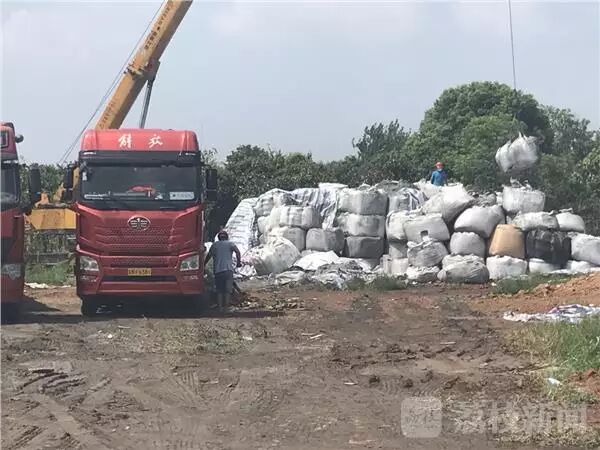 在查明這批危廢來(lái)源的之后,宜興市公安和環(huán)保部門(mén)責(zé)令泗陽(yáng)縣海光金屬有限公司把“鋁灰”運(yùn)回企業(yè)處置,8月11號(hào),記者西渚鎮(zhèn)廢棄磚瓦廠(chǎng)看到,兩臺(tái)吊車(chē)正在作業(yè),為了確保安全轉(zhuǎn)運(yùn),警方派人進(jìn)行了值守。宜興市公安局西渚鎮(zhèn)派出所教導(dǎo)員 宋琛禎:我們分別安排了兩批共計(jì)16名警力,確保這些危廢能夠安全的無(wú)遺漏的,并且規(guī)范的轉(zhuǎn)移到我們涉事的企業(yè)。泗陽(yáng)縣海光金屬有限公司銷(xiāo)售部經(jīng)理王乃義:現(xiàn)在我們就是把這個(gè)廢物呢,通過(guò)水運(yùn)和陸運(yùn)同步進(jìn)行,盡快把它全部拉回廠(chǎng)里去。那么這些危廢被偷運(yùn)到宜興究竟是企業(yè)行為還是業(yè)務(wù)員孫某的個(gè)人行為呢?王乃義表示他并不知情。