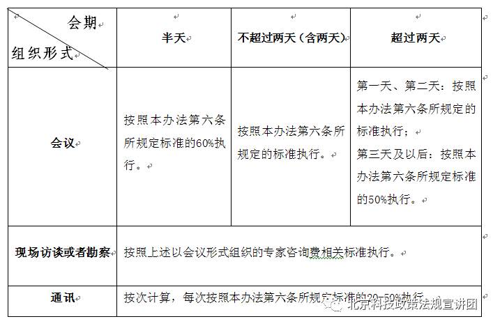 第九條 不同形式組織的專家咨詢活動適用專家咨詢費標(biāo)準(zhǔn)如下: