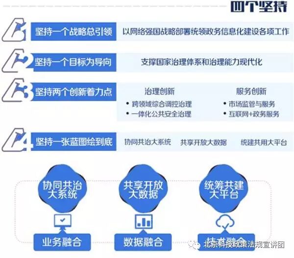 “十三五”政務(wù)信息化工作創(chuàng)新發(fā)展的理念共識可概括為“四個堅持”。一是堅持一個戰(zhàn)略總引領(lǐng),按照構(gòu)建網(wǎng)絡(luò)強(qiáng)國的戰(zhàn)略部署,統(tǒng)領(lǐng)政務(wù)信息化各項工作。二是堅持一個目標(biāo)為導(dǎo)向,把推進(jìn)國家治理體系和治理能力現(xiàn)代化作為政務(wù)信息化工作的總目標(biāo)。三是堅持兩個創(chuàng)新著力點,從政府供給側(cè)角度加強(qiáng)政務(wù)治理創(chuàng)新,從需求側(cè)角度加強(qiáng)公共服務(wù)創(chuàng)新。四是堅持一張藍(lán)圖繪到底,按照頂層設(shè)計理念大力強(qiáng)化政務(wù)信息化統(tǒng)籌共享力度,將“大平臺、大數(shù)據(jù)、大系統(tǒng)”作為較長一個時期的發(fā)展藍(lán)圖一抓到底。