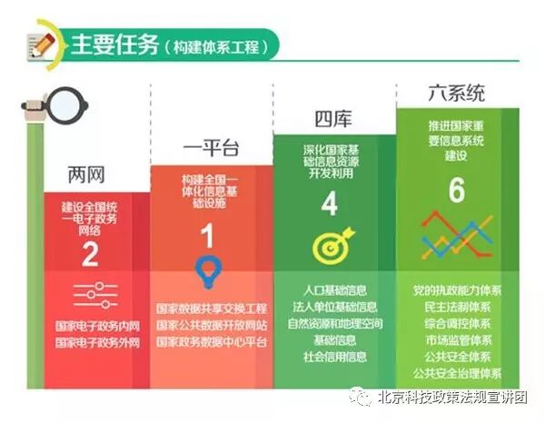 一是統(tǒng)籌推進(jìn)國家電子政務(wù)內(nèi)網(wǎng)和國家電子政務(wù)外網(wǎng),基本實現(xiàn)各類政務(wù)專網(wǎng)的整合遷移和融合互聯(lián),支撐各級政務(wù)部門縱橫聯(lián)動和協(xié)同治理。二是深入推進(jìn)政務(wù)信息化建設(shè)的集約整合和共享共用,一體化推進(jìn)國家政務(wù)數(shù)據(jù)中心、國家數(shù)據(jù)共享交換工程和國家公共數(shù)據(jù)開放網(wǎng)站的融合建設(shè),打造“覆蓋全國、統(tǒng)籌利用、統(tǒng)一接入”的大平臺。三是深化國家基礎(chǔ)信息資源開發(fā)利用,持續(xù)推進(jìn)人口基礎(chǔ)信息庫、法人單位基礎(chǔ)信息庫、自然資源和地理空間基礎(chǔ)信息庫、社會信用信息庫的建設(shè)完善及開發(fā)利用,關(guān)聯(lián)融合社會大數(shù)據(jù),逐步匯聚形成政務(wù)治理大數(shù)據(jù),充分挖掘數(shù)據(jù)價值,釋放數(shù)據(jù)紅利。四是推進(jìn)國家重要信息系統(tǒng)建設(shè),充分體現(xiàn)協(xié)同共治、信息共享理念,規(guī)劃設(shè)計了黨的執(zhí)政能力、民主法治、綜合調(diào)控、市場監(jiān)管、公共安全、公共安全治理等6大體系工程,統(tǒng)籌整合新增業(yè)務(wù)系統(tǒng)及已有存量信息系統(tǒng)。