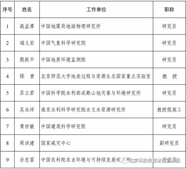 “重大自然災(zāi)害監(jiān)測預(yù)警與防范” 重點(diǎn)專項(xiàng) 2017 年度項(xiàng)目申報指南編制專家名單