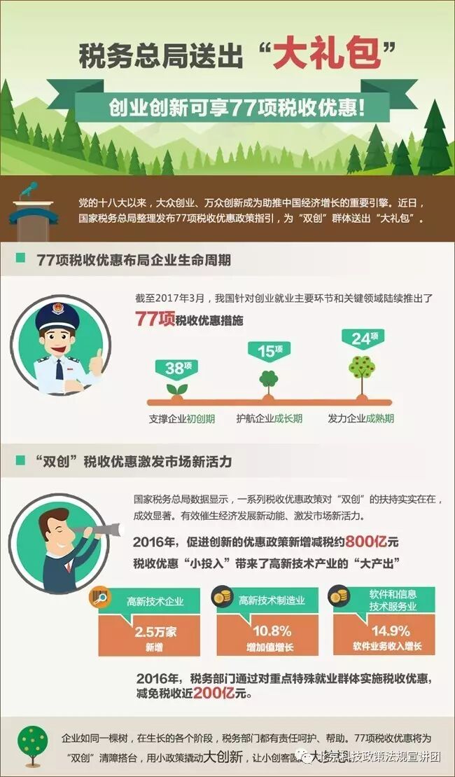 創(chuàng)業(yè)創(chuàng)新是推動(dòng)我國(guó)經(jīng)濟(jì)社會(huì)發(fā)展的強(qiáng)大動(dòng)力。黨的十八大以來(lái),國(guó)家大力促進(jìn)“大眾創(chuàng)業(yè)、萬(wàn)眾創(chuàng)新”,稅收作為調(diào)控經(jīng)濟(jì)的重要杠桿在“雙創(chuàng)”中發(fā)揮了重要作用,鼓勵(lì)“雙創(chuàng)”稅收優(yōu)惠政策的實(shí)施,不斷激活萬(wàn)千蘊(yùn)藏?zé)o窮創(chuàng)造力的市場(chǎng)細(xì)胞,助推“雙創(chuàng)”成為我國(guó)經(jīng)濟(jì)增長(zhǎng)的新引擎。截至2017年3月,國(guó)家針對(duì)創(chuàng)業(yè)創(chuàng)新的主要環(huán)節(jié)和關(guān)鍵領(lǐng)域陸續(xù)推出了77項(xiàng)稅收優(yōu)惠政策,為“雙創(chuàng)之樹(shù)”提供了一系列“養(yǎng)料”助其成長(zhǎng)壯大??墒恰梆B(yǎng)料”共有幾種?哪種適合自己?“施料”時(shí)要注意什么?稅務(wù)部門近期推出了《“大眾創(chuàng)業(yè) 萬(wàn)眾創(chuàng)新”稅收優(yōu)惠政策指引》(以下簡(jiǎn)稱《指引》),助力廣大創(chuàng)業(yè)創(chuàng)新者更好享受稅收政策紅利。