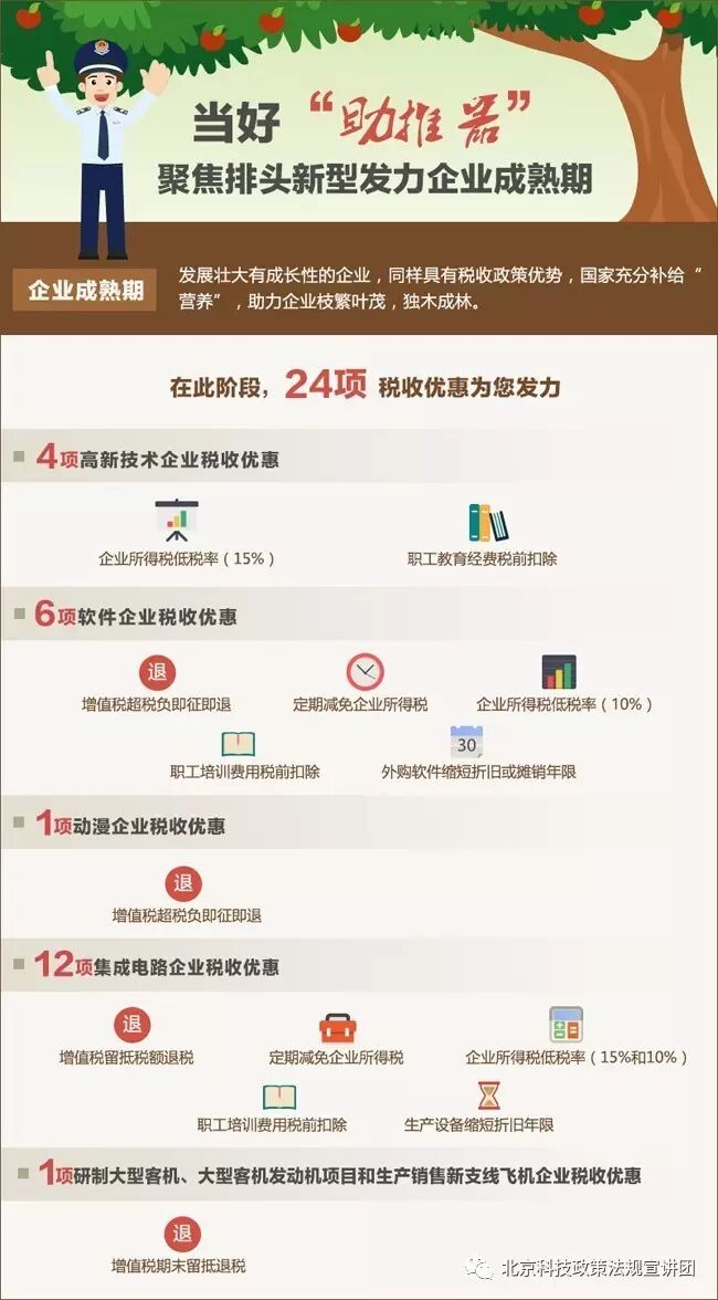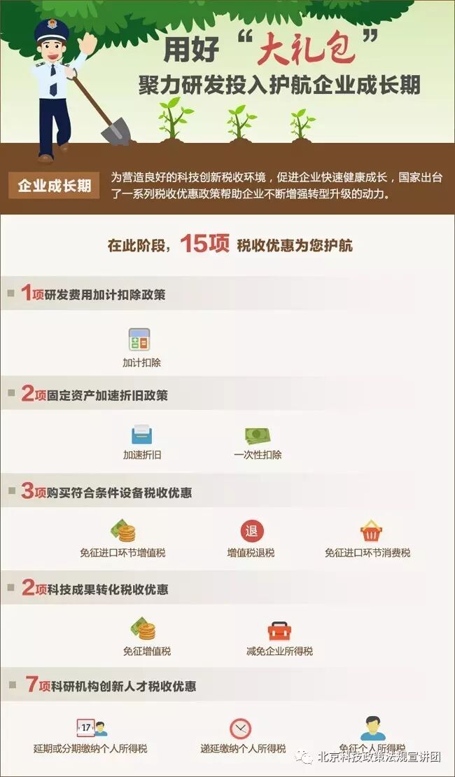 縱向全鏈條貫穿企業(yè)各發(fā)展階段。“在內(nèi)容歸集上,《指引》涵蓋現(xiàn)行有效的77項(xiàng)稅收優(yōu)惠政策,根據(jù)企業(yè)在不同階段的不同需求,從初生、成長(zhǎng)和成熟壯大三個(gè)環(huán)節(jié)制成企業(yè)發(fā)展的‘指南針’。”劉宜說(shuō)。創(chuàng)業(yè)起步階段的企業(yè)最關(guān)注稅收負(fù)擔(dān)和寬松的創(chuàng)業(yè)環(huán)境,《指引》中第一部分便歸納了小微企業(yè)和特殊群體創(chuàng)業(yè)就業(yè)等方面的稅收優(yōu)惠政策,同時(shí)還介紹了對(duì)扶持企業(yè)成長(zhǎng)的創(chuàng)新創(chuàng)業(yè)平臺(tái)和創(chuàng)投企業(yè)、金融機(jī)構(gòu)給予的稅收優(yōu)惠;為了給予高速發(fā)展階段的企業(yè)稅收優(yōu)惠助力,《指引》第二部分介紹了研發(fā)費(fèi)用加計(jì)扣除、固定資產(chǎn)加速折舊、以及對(duì)重點(diǎn)行業(yè)領(lǐng)域稅前扣除等所得稅優(yōu)惠政策;較成熟的企業(yè)則更關(guān)注國(guó)家宏觀經(jīng)濟(jì)調(diào)控導(dǎo)向,《指引》第三部分總結(jié)了稅收優(yōu)惠政策對(duì)科技創(chuàng)新活動(dòng)各個(gè)環(huán)節(jié)領(lǐng)域的支持,加快創(chuàng)新型企業(yè)搶占科技制高點(diǎn)的步伐,激勵(lì)科研機(jī)構(gòu)、科技人員創(chuàng)新,助力企業(yè)有的放矢、枝繁葉茂。