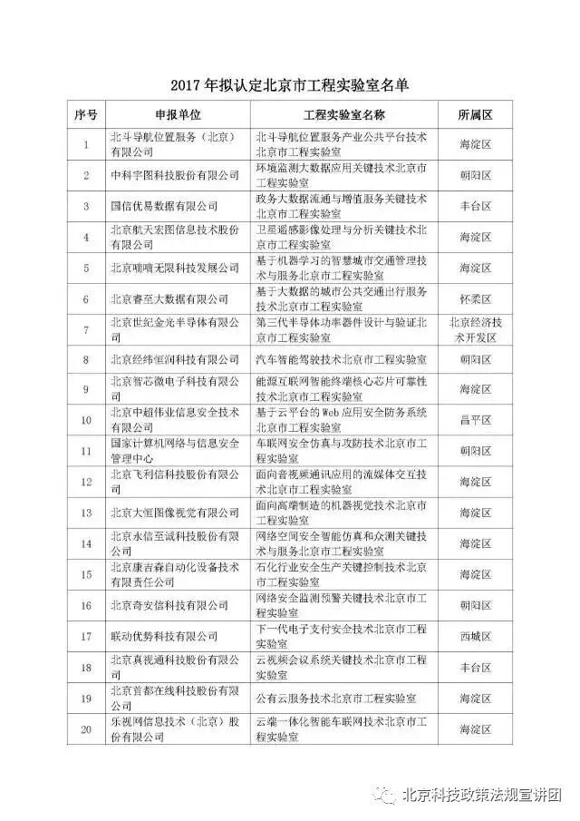 北京:2017年擬認(rèn)定北京市工程研究中心和工程實(shí)驗(yàn)室的公示