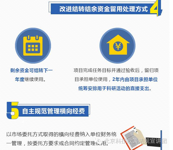(四)改進結轉結余資金留用處理方式。項目實施期間,年度剩余資金可結轉下一年度繼續(xù)使用。項目完成任務目標并通過驗收后,結余資金按規(guī)定留歸項目承擔單位使用,在2年內由項目承擔單位統(tǒng)籌安排用于科研活動的直接支出;2年后未使用完的,按規(guī)定收回。