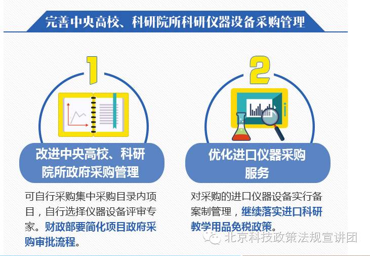 (二)優(yōu)化進口儀器設備采購服務。對中央高校、科研院所采購進口儀器設備實行備案制管理。繼續(xù)落實進口科研教學用品免稅政策。