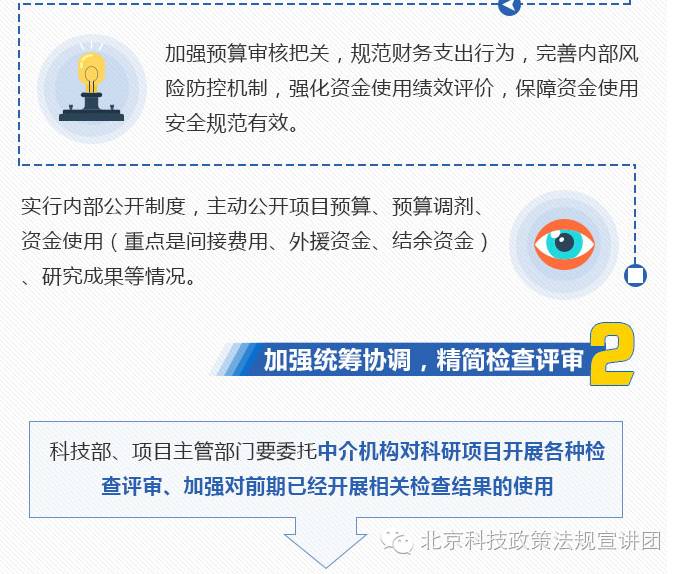 ——堅持“放管服”結合。進一步簡政放權、放管結合、優(yōu)化服務,擴大高校、科研院所在科研項目資金、差旅會議、基本建設、科研儀器設備采購等方面的管理權限,為科研人員潛心研究營造良好環(huán)境。同時,加強事中事后監(jiān)管,嚴肅查處違法違紀問題。