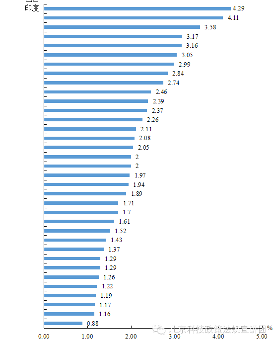 [2]美國(guó)、澳大利亞、新加坡、新西蘭、巴西和印度為2013年數(shù)據(jù),其他國(guó)家均為2014年數(shù)據(jù)。
