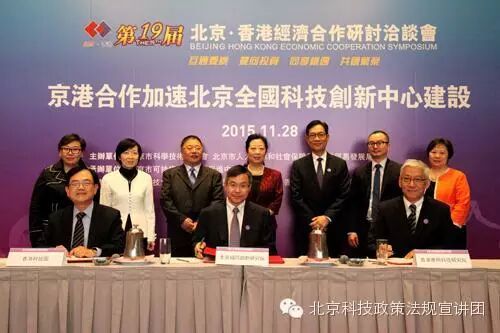 2015年11月27-28日,第十九屆京港經(jīng)濟(jì)合作洽談會(huì)(以下簡稱京港會(huì))在香港舉行,北京市科委在京港會(huì)重大項(xiàng)目簽約儀式上與香港科技大學(xué)、香港理工大學(xué)、香港城市大學(xué)三所高校簽署了《京港科技創(chuàng)新協(xié)同發(fā)展戰(zhàn)略合作協(xié)議》,京港兩地將在“科技資源開放共享”、“推進(jìn)研發(fā)合作”、“開展科技成果轉(zhuǎn)化對接”、“共同籌建國際交往大學(xué)生創(chuàng)新創(chuàng)業(yè)孵化平臺(tái)”等方面開展科技合作,標(biāo)志著京港兩地將開啟科技創(chuàng)新創(chuàng)業(yè)的新航程。