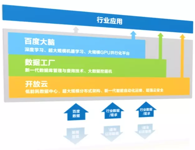 上層是百度大腦,包括深度學(xué)習(xí)、超大規(guī)模機(jī)器學(xué)習(xí)、大規(guī)模GPU并行化平臺(tái)。
