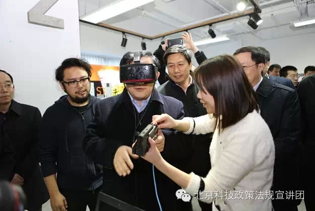 萬鋼部長一行首先來到創(chuàng)客空間,調(diào)研“創(chuàng)客”的發(fā)展情況,并體驗了蟻視科技的虛擬現(xiàn)實頭盔。隨后,萬鋼部長一行來到中關村創(chuàng)業(yè)大街調(diào)研,走訪了天使匯、36氪、車庫咖啡、北京大學創(chuàng)業(yè)訓練營等創(chuàng)業(yè)服務機構(gòu),聽取了機構(gòu)負責人的介紹并同他們進行交流。