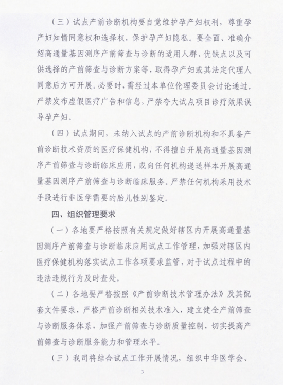 另外,婦幼司在通知中明確表示,未納入試點(diǎn)的產(chǎn)前診斷機(jī)構(gòu)和不具備產(chǎn)前診斷技術(shù)資質(zhì)的醫(yī)療保健機(jī)構(gòu),不得擅自開展高通量基因測序產(chǎn)前篩查與臨床診斷應(yīng)用,或向任何機(jī)構(gòu)遞送樣本開展高通量基因測序產(chǎn)前篩查與臨床診斷服務(wù)。