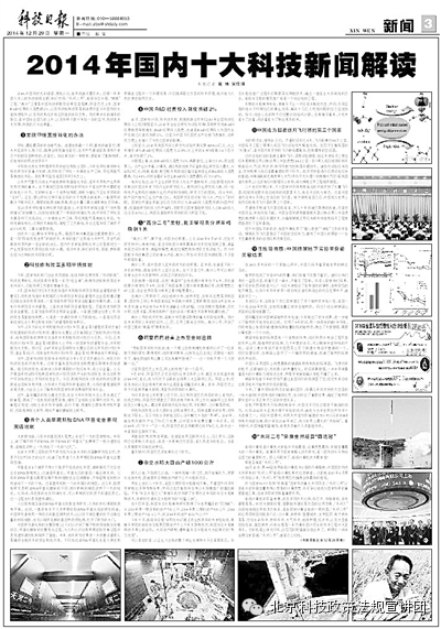 (2014年國內(nèi)國際十大科技新聞解讀詳見今日二、三版)