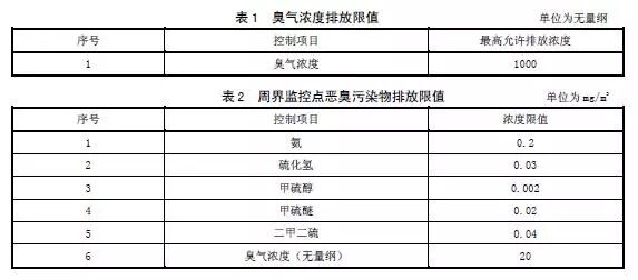 4.2 有組織排放源(滲濾液處理設(shè)施排氣筒)臭氣濃度排放限值應(yīng)符合表1中的規(guī)定,周界監(jiān)控點惡臭污染物排放限值應(yīng)符合表2中的規(guī)定。