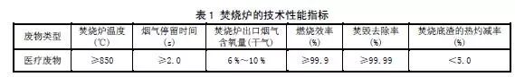 4.3.1醫(yī)療廢物焚燒爐的技術(shù)性能指標(biāo)應(yīng)滿足表1的要求。
