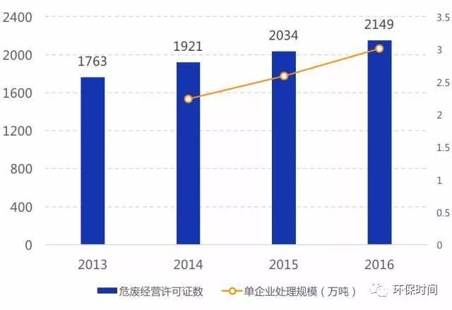 2)資質量與核準處置種類限定了企業(yè)的規(guī)模,且政府對許可證新頒發(fā)與展期的要求越來越嚴格,資質量小的企業(yè)會越來越不容易得到審批。
