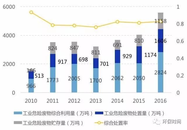 在環(huán)保監(jiān)管力度增強,各省均推出省級督查方案背景下,危廢處置剛需再次提升,尤其是要求進入規(guī)范渠道處置的量增加。但市場情況是,實際產(chǎn)生量遠大于統(tǒng)計量(披露16年5347萬噸,預計實際8000萬噸),低綜合利用處置率(83%),低有效利用率(25%),導致整體危廢的處置供不應求。