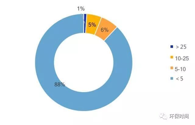 從處理量上來看,處理能力低于50噸/日的企業(yè)超八成,處理能力達到1000噸/日的企業(yè)僅占0.3%。