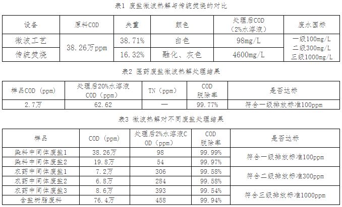 從以上表中可以明顯看出,微波熱解設(shè)備對有機(jī)廢鹽的處理適用性好、完全可達(dá)到無害化處理目的,部分產(chǎn)物可返回生產(chǎn)再次利用。