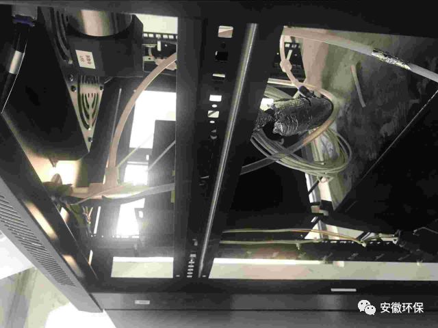 該企業(yè)1#爐為130t/h,應(yīng)執(zhí)行《火電廠大氣污染物排放標(biāo)準(zhǔn)》(GB 13223-2011),過??諝庀禂?shù)應(yīng)為1.4,實(shí)際在線監(jiān)測(cè)系統(tǒng)設(shè)置過??諝庀禂?shù)1.75,導(dǎo)致監(jiān)測(cè)數(shù)據(jù)折算值變小。 1#爐在線監(jiān)測(cè)系統(tǒng)人為加裝吸收裝置,白色塑料桶裝有溶液,通過加裝的蠕動(dòng)泵將塑料桶中溶液打入在線系統(tǒng)機(jī)柜內(nèi)濕度監(jiān)測(cè)儀上方的采樣管。(該企業(yè)為3月8日曝光的安徽國(guó)禎生物質(zhì)發(fā)電有限責(zé)任公司(潁州區(qū))新廠區(qū)!)