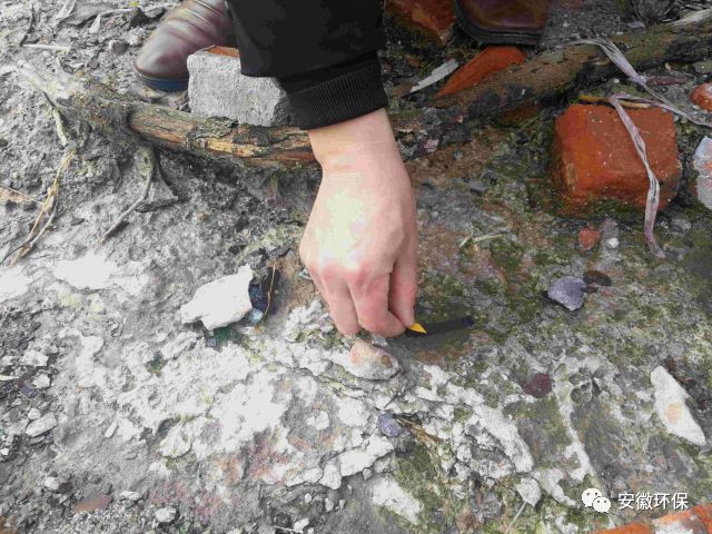 該公司于2008年開始投產(chǎn),無環(huán)評(píng)審批手續(xù)。生產(chǎn)產(chǎn)品為水玻璃,主要生產(chǎn)原料為硅酸鈉,片堿等。使用1蒸噸燃煤鍋爐,煤渣及生產(chǎn)廢渣露天堆放,廠區(qū)南側(cè)有一排污口,廢水沿排污口流入墻外坑塘內(nèi)?,F(xiàn)場(chǎng)使用ph試紙測(cè)試,外排廢水呈強(qiáng)堿性,坑塘內(nèi)水質(zhì)也呈堿性。廠區(qū)內(nèi)暫存池未做防腐防滲處理,泡冒滴露現(xiàn)象嚴(yán)重,廠區(qū)環(huán)境臟亂差。