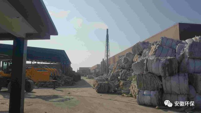 安慶殷先根廢舊塑料破碎作坊:檢查時(shí)正在生產(chǎn),廠區(qū)內(nèi)堆有收購的廢舊機(jī)油桶和廢舊化學(xué)品桶。