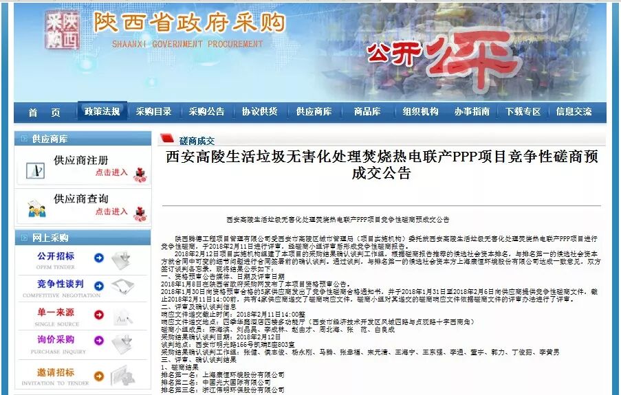 西安高陵生活垃圾無(wú)害化處理焚燒熱電聯(lián)產(chǎn)PPP項(xiàng)目競(jìng)爭(zhēng)性磋商與成交公告