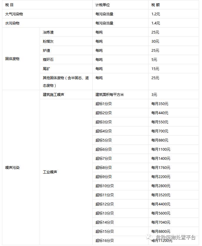 各種污染物的環(huán)保稅率清單及應繳環(huán)保稅的計算公式