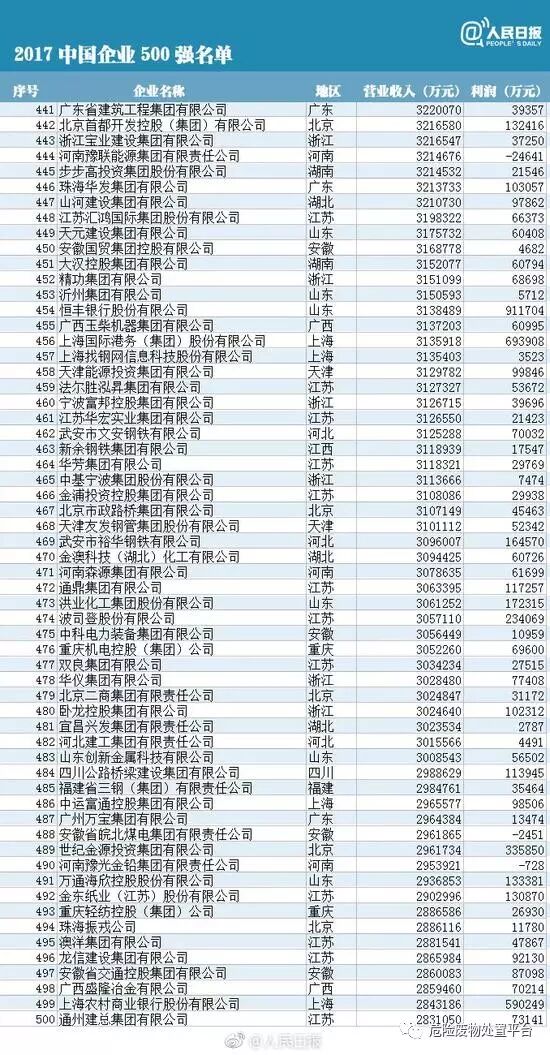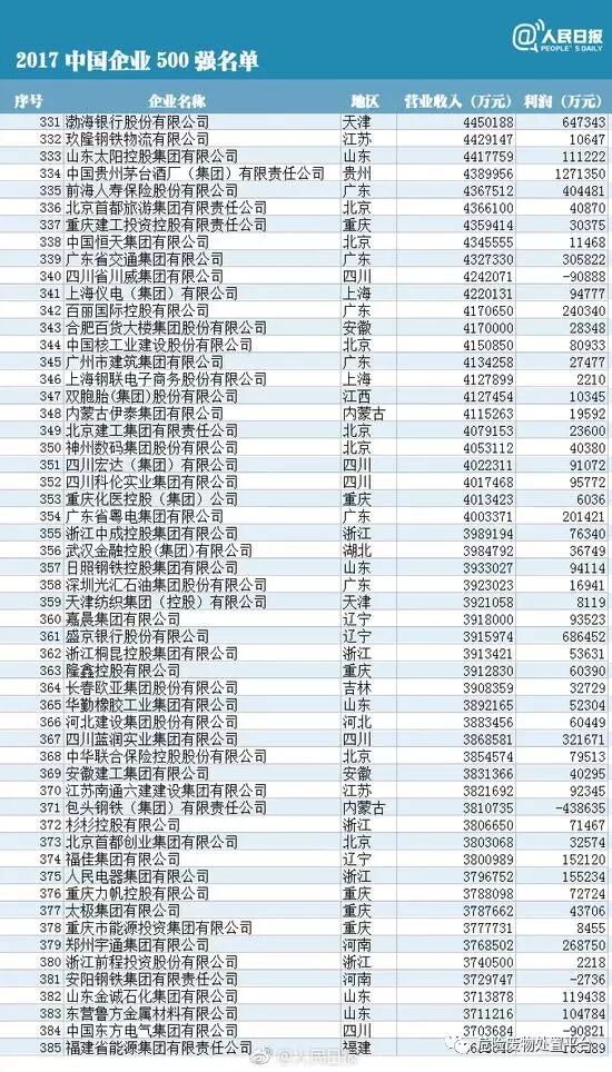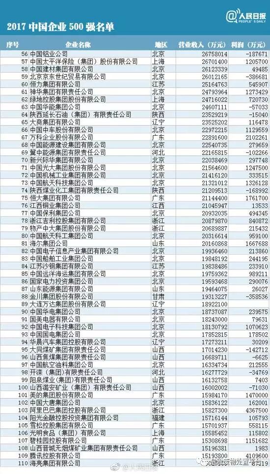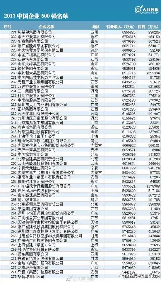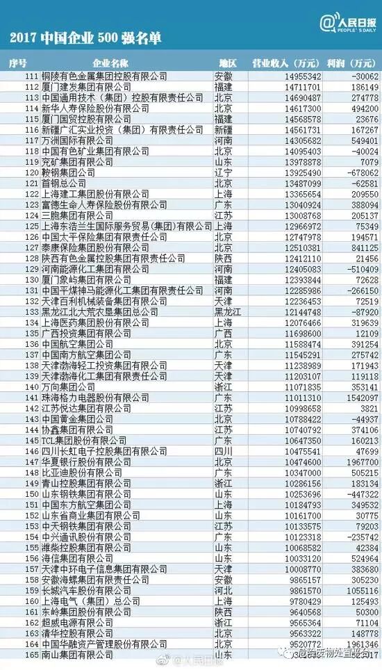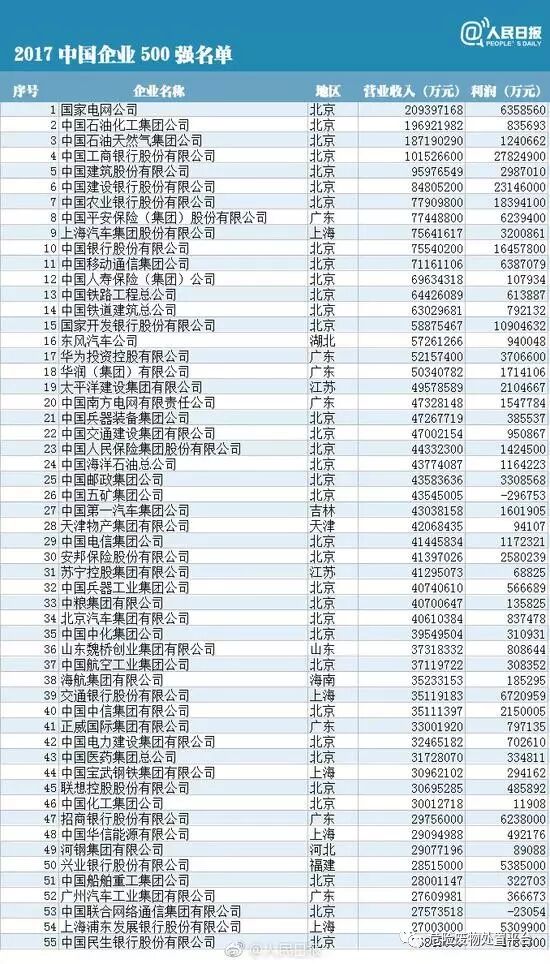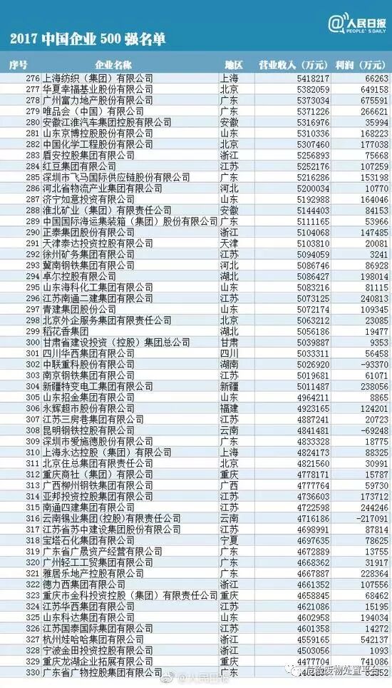 2017中國企業(yè)500強(qiáng)榜單發(fā)布