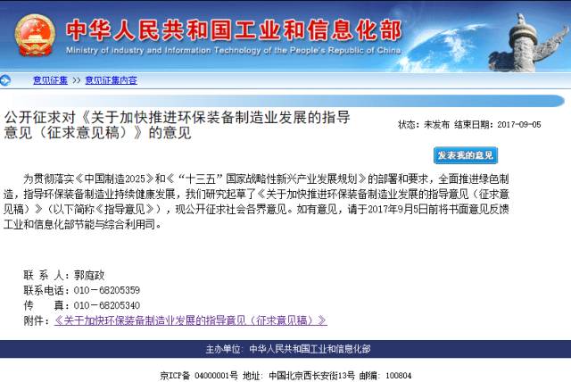 8月23日,記者從工信部網(wǎng)站獲悉,工信部公開征求對(duì)《關(guān)于加快推進(jìn)環(huán)保裝備制造業(yè)發(fā)展的指導(dǎo)意見(征求意見稿)》(下稱“《指導(dǎo)意見》”)的意見。