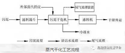 熱水干化法是利用高溫熱水的熱能,經過換熱器進行熱交換,蒸發(fā)污泥中的水分使得污泥干化。