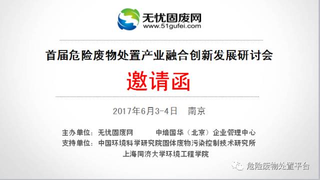 為提高危廢的精細化管理水平,交流危廢處置利用選擇最佳可行的先進技術(shù)和設(shè)備,構(gòu)建供需平臺,共同促進我國危廢的無害化處置利用目的,我單位聯(lián)合行業(yè)權(quán)威機構(gòu)于江蘇省南京市6月2-4日共同舉辦“首屆危險廢物處置產(chǎn)業(yè)融合創(chuàng)新發(fā)展研討會”。請各危廢產(chǎn)生、處置利用單位和危險廢物處置利用技術(shù)、設(shè)備研發(fā)和供應(yīng)單位積極報名參加。