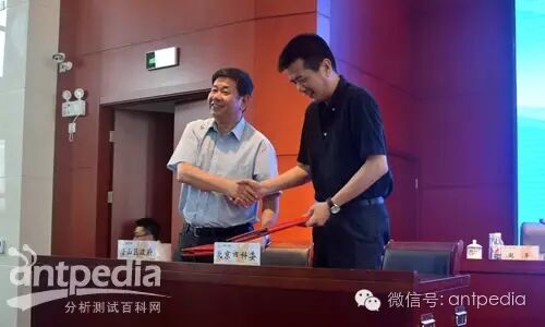 北京市科委副主任鄭煥敏和北京大學(xué)實(shí)驗(yàn)室與設(shè)備管理部部長張新祥簽署協(xié)議書
