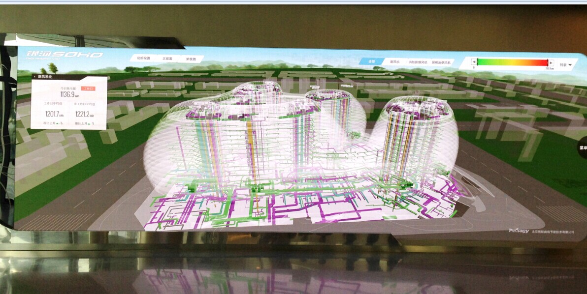 陳冬亮主任介紹說,獲得至尊金獎的“Isagy BIM能源管理平臺”,是國內(nèi)唯一將建筑信息3D模型引入智能樓宇節(jié)能管理系統(tǒng)的設(shè)計。該項設(shè)計整合了建筑信息模型(BIM)和能源管理系統(tǒng)(EMS),采用三維立體展示方式,全方位模擬建筑,令管理者更直觀、清晰的了解建筑內(nèi)部的環(huán)境參數(shù)、實時能耗和實時效率。未來如果在城市中得以普及應(yīng)用,將可為城市建筑能耗集中管理提供重要的參考依據(jù)和優(yōu)化解決方案。目前,這種全新的能源管理系統(tǒng)已在北京銀河SOHO和望京SOHO得到先期應(yīng)用。