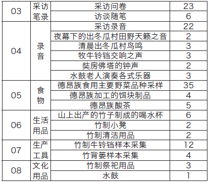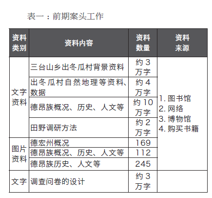 經(jīng)初步整理,“生活方式”分項(xiàng)目調(diào)研小組從先期的案頭工作到兩次田野調(diào)研,歷時(shí)三個(gè)月,先后收集到的資料清單如下: