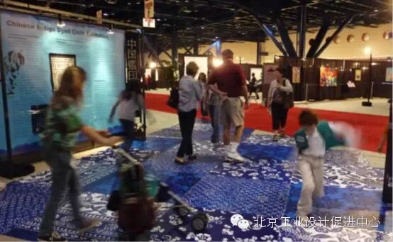 國內盛況之時,2009 年10 月10 日,由慈城古縣城保護與開發(fā)管理委員會及其下屬天工之城公司主辦、《漢聲》雜志承辦的“中國藍印花布”展覽,在美國Quilts,Inc. 舉辦的“休斯敦國際拼布節(jié)”中熱烈開幕。(圖16)在參會的諸多展覽之中,“中國藍印花布”以匠心獨運的漿染工藝、美不勝收的藍白花紋、寄情深遠的美好意涵,讓展覽主辦單位和前來觀展的游客對這種來自古老東方的工藝美術贊嘆不已。許多友人主動幫助我們布展。八天的展覽之后,撤展之時,吉祥字樣和紋樣都成為大家主動索取的寶貝,要拿回去裝飾自己的家,同時不忘要漢聲的工作人員提供紋樣意涵的詳細說明,令人殊為感動。瑞士、荷蘭、法國的參展者紛紛前來邀展,甚至已經開始動手測量展場布局。自明清直到上世紀中期,藍印花布曾是中國百姓日用的尋常之物;今天回望,那些來自百姓生活創(chuàng)造的美感、意涵、技法仍深深打動我們,也打動初次見識到它們,擁有先進工藝技術的外國友人。