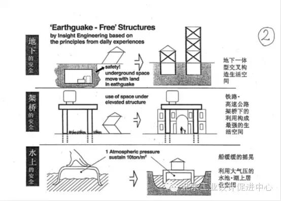 擁有各自專業(yè)領(lǐng)域的人,以“發(fā)明和想象工學(xué)的構(gòu)思”來設(shè)計都市防災(zāi)和進(jìn)行未來設(shè)計。事例: 黃土地帶耐震地下空間、顛倒的方舟(UDA) 型海上都市、1/2 體積空間都市等。