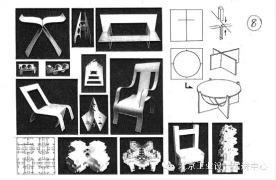 現(xiàn)代文明如前所述,主要是鐵板、鋼筋板、塑料、玻璃、木質(zhì)板等構(gòu)成或構(gòu)筑的。如果把這個社會原理作為直接設(shè)計教育的基礎(chǔ)來應(yīng)用,即使是10 歲小孩, 用以下的簡單技法,也能做出讓現(xiàn)在的設(shè)計師、建筑師為之驚嘆的作品。